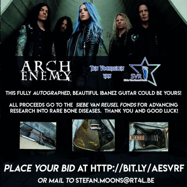 This fully autographed, beautiful Ibanez guitar could be YOURS! All proceeds go to the Siebe Van Reusel fonds for advancing research into rare bone diseases. To place your bid go to www.rt4l.be or mail to