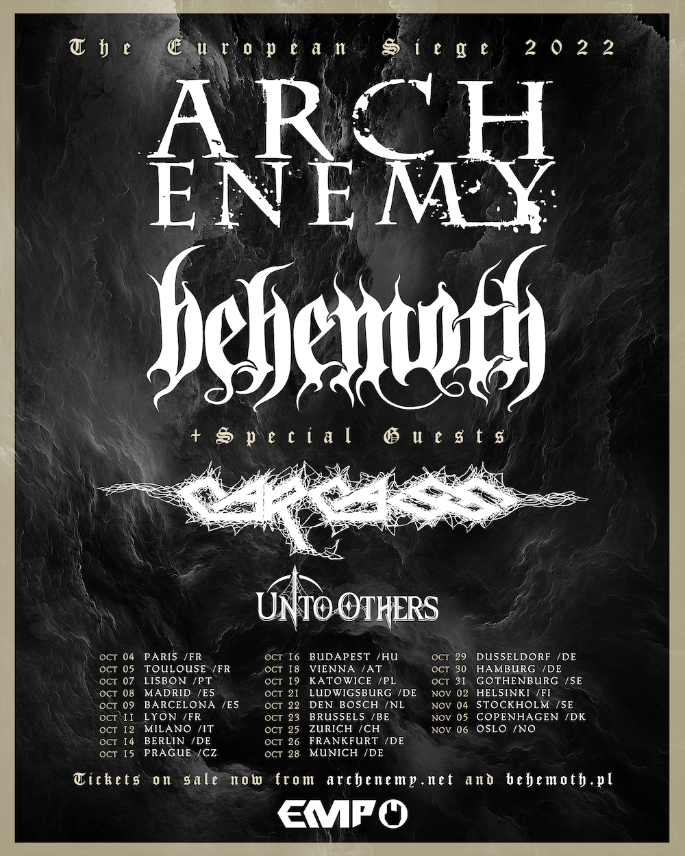 With Arch Enemy, Behemoth + Support by Carcass & Unto Others